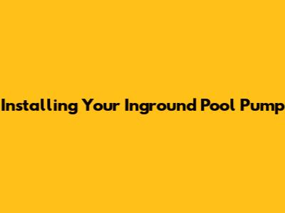 Inground Pool Pump Installation Guide