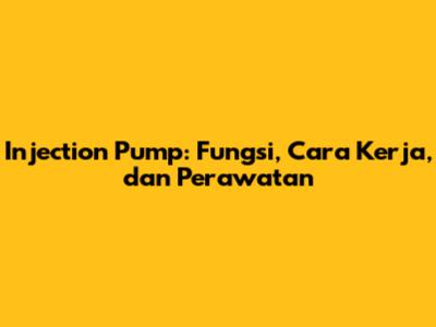 Injection Pump: Fungsi, Cara Kerja, Dan Perawatan