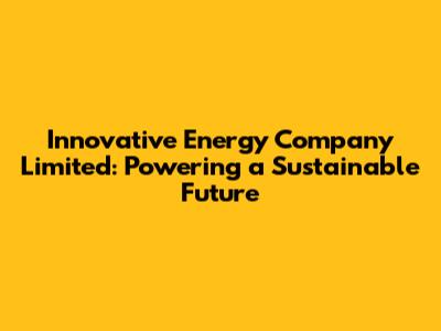 Innovative Energy Company: Powering A Sustainable Future