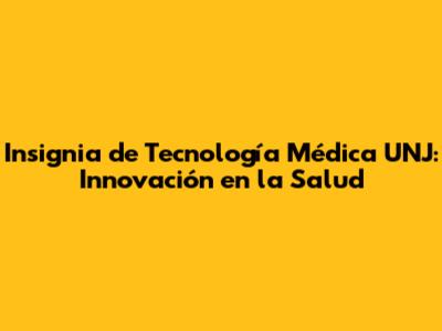 Insignia De Tecnología Médica UNJ: Avances En Salud