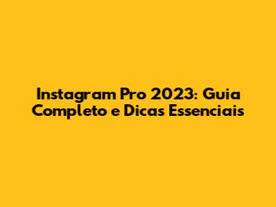 Instagram Pro 2023: Guia Completo E Dicas Essenciais