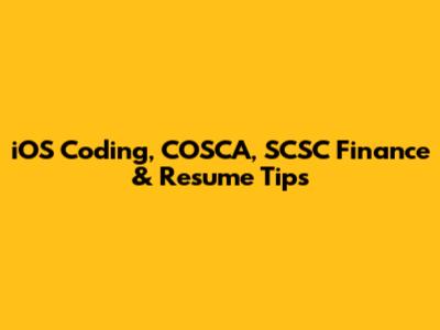 IOS Coding, COSCA, SCSC Finance & Resume Tips