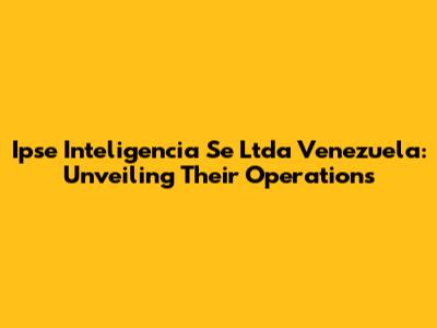 Ipse Inteligencia: A Deep Dive Into Venezuelan Operations