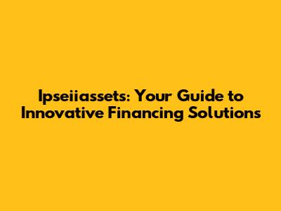 Ipseiiassets: Your Guide To Innovative Financing Solutions