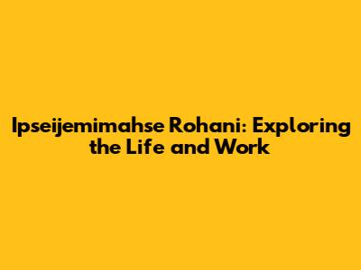 Ipseijemimahse Rohani: Exploring The Life And Work