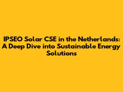 Hey there, energy enthusiasts! Ever wondered how the Netherlands is embracing the sun to power its future? Let's dive deep into the world of IPSEO Solar CSE and explore its significant impact on the Dutch energy landscape. We will explore what makes this an important element in the shift to sustainable energy sources.