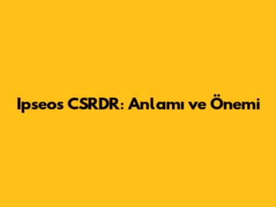 Ipseos CSRDR: Anlamı Ve Önemi