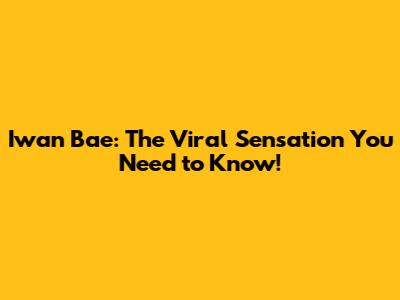 Iwan Bae: The Viral Sensation You Need To Know!