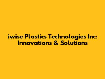 Let's dive into the world of iwise Plastics Technologies Inc, a company making waves in the plastics industry. This isn't just another company; it's a hub of innovation, pushing the boundaries of what's possible with plastics. We're going to explore what makes iwise Plastics Technologies stand out, from their cutting-edge technologies to their commitment to sustainable solutions. Whether you're a seasoned professional in the field or just curious about the future of plastics, there's something here for everyone.