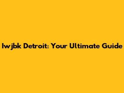 Iwjbk Detroit: Your Ultimate Guide