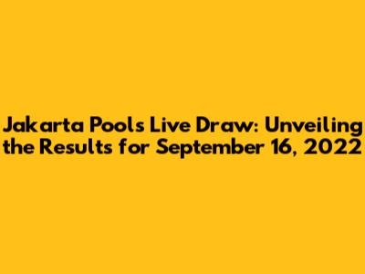 Hey everyone! Are you ready to dive into the exciting world of Jakarta Pools? Tonight, we're taking a look back at the live draw results from September 16, 2022. Whether you're a seasoned player or just curious about the numbers, this article is for you. We'll break down the results, discuss what they mean, and explore some interesting aspects of Jakarta Pools. So, grab a snack, sit back, and let's get started!