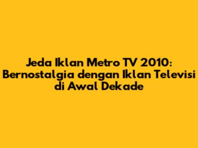Hey, guys! Siapa di sini yang kangen sama suasana nonton TV di tahun 2010? Terutama pas lagi seru-serunya nonton acara favorit di Metro TV, eh, tiba-tiba layar jadi hitam terus muncul jeda iklan. Yap, jeda iklan Metro TV tahun 2010 itu punya ciri khasnya sendiri, lho. Buat kalian yang lahir di era 90-an atau awal 2000-an, pasti inget banget sama jingle-jingle yang nempel di kepala atau produk-produk yang iklannya iconic banget. Artikel ini bakal ajak kalian flashback dan nostalgia sama jeda iklan Metro TV di tahun 2010. Siap-siap ya, karena kita bakal ngobrolin soal tren iklan saat itu, produk apa aja yang hits, sampai gimana sih jeda iklan ini jadi bagian dari pengalaman menonton kita.