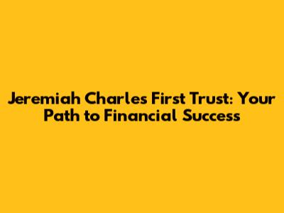 Jeremiah Charles First Trust: Your Guide To Financial Success