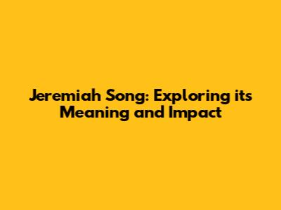Jeremiah Song: Exploring Its Meaning And Impact