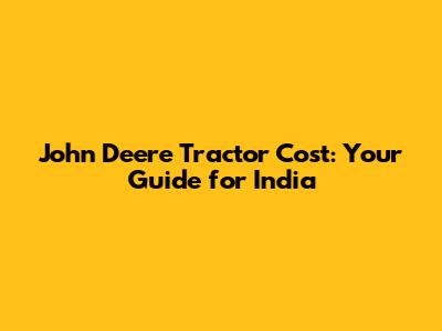 John Deere Tractor Cost: Your Guide For India