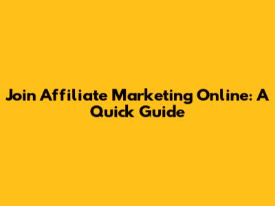 Join Affiliate Marketing Online: A Quick Guide
