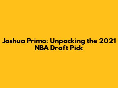 What's up, draft fanatics? Today, we're diving deep into a pick that raised some eyebrows and sparked a lot of conversation: Joshua Primo in the 2021 NBA Draft. You guys remember that draft class, right? It was stacked with talent, and teams were looking for that next big thing. Primo, selected by the San Antonio Spurs, was one of those intriguing prospects. He wasn't always at the top of everyone's mock drafts, but he certainly had a unique journey to the NBA. Let's break down who Joshua Primo is, what made him a draftable player, and what his early career has looked like. We'll cover his college stint, his strengths and weaknesses as a player, and ultimately, what the Spurs were hoping to get when they took him. This isn't just about a name on a list; it's about understanding the player development and scouting process in the modern NBA. So, grab your popcorn, because we're about to unpack all things Joshua Primo, the Spurs' surprising draft selection.
