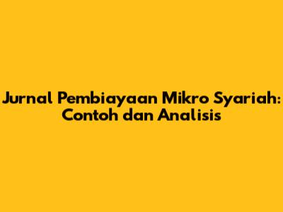 Jurnal Pembiayaan Mikro Syariah: Contoh Dan Analisis