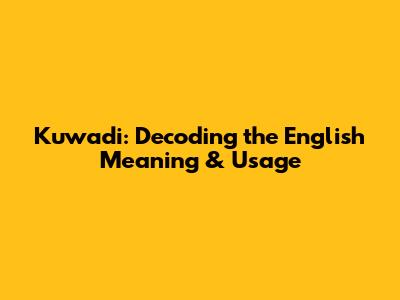 Kuwadi: Decoding The English Meaning & Usage