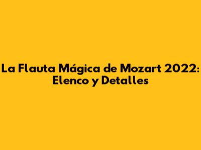 La Flauta Mágica De Mozart 2022: Elenco Y Detalles