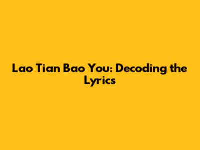Hey everyone! Ever stumbled upon a song and just felt something about it, even if you didn't quite get the words? That's the magic of music, right? Today, we're diving deep into a track that's been making waves and sparking curiosity: "Lao Tian Bao You". You've probably heard the melody, maybe even hummed along, but what's the real meaning behind those lyrics? Let's break it down, guys, and uncover the story this song is telling. We're going to go line by line, exploring the cultural nuances, the emotions, and the messages that make "Lao Tian Bao You" so captivating. Get ready to understand the heart of this tune!