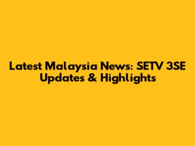 Latest Malaysia News: SETV 3SE Updates & Highlights