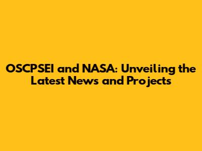 Latest News: OSCPSEI And NASA's Current Projects