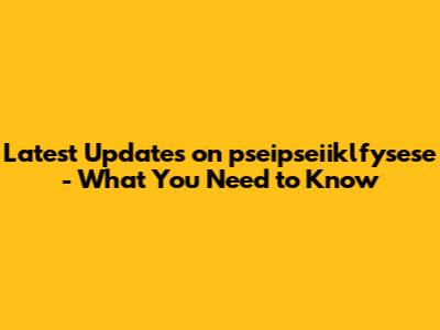 Latest Updates On Pseipseiiklfysese - What You Need To Know