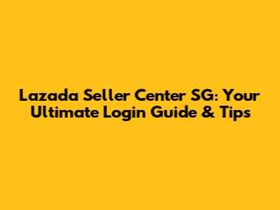 Lazada Seller Center SG: Login Guide & Tips