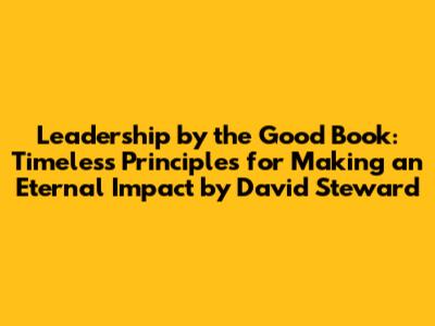 This book isn't just for those who identify as religious; it's for anyone who seeks to lead with purpose and authenticity. The principles discussed – such as humility, compassion, and integrity – are universal values that resonate across cultures and belief systems. By grounding leadership in these ethical foundations, Steward argues that leaders can create organizations and communities that are not only successful but also sustainable and deeply meaningful. It's about fostering a culture of trust, respect, and mutual support, where everyone feels valued and empowered to contribute their best. So, if you're ready to embark on a transformative journey that will challenge you to lead with greater purpose and impact, then buckle up and get ready to delve into the timeless wisdom of "Leadership by the Good Book."