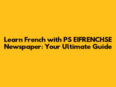 Learn French With PS EIFRENCHSE Newspaper