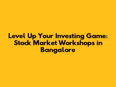 Level Up Your Investing Game: Stock Market Workshops In Bangalore