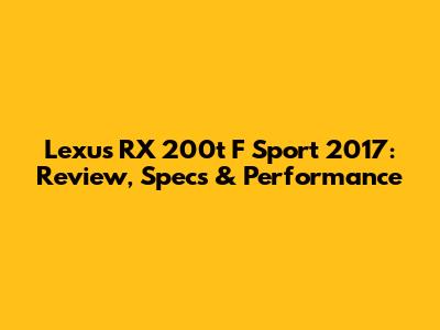Hey guys! Today, we’re diving deep into the Lexus RX 200t F Sport 2017. This car isn't just about getting from A to B; it's about doing it with style, comfort, and a dash of sporty flair. So, buckle up as we explore everything this beauty has to offer, from its performance and specs to its overall driving experience. Let's get started!