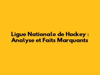 Ligue Nationale De Hockey : Analyse Et Faits Marquants