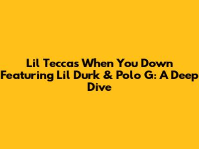 Yo, what's up, music lovers! Today, we're diving deep into Lil Tecca's track, "When You Down", a certified banger that features the lyrical prowess of Lil Durk and Polo G. This song isn't just another tune; it's a whole vibe, blending Tecca's signature style with the distinct flavors that Durk and Polo bring to the table. If you haven't already, you seriously need to give this track a listen, and if you have, stick around as we break down what makes it so special. From the catchy beats to the raw emotion in the lyrics, "When You Down" is a rollercoaster of sounds and feelings that'll leave you hitting repeat. So, buckle up as we dissect every aspect of this collaboration, exploring the impact each artist has on the song and why it resonates with so many listeners. We're going to explore the melody and lyrical content, so stay tuned to understand everything that makes the song unique.