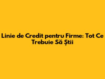 Bună, oameni buni! Dacă sunteți antreprenori sau aveți o firmă, cu siguranță ați auzit de linia de credit pentru persoana juridică. Dar ce este mai exact și cum poate ajuta afacerea voastră? În acest ghid complet, vom explora totul despre liniile de credit, de la definiție și avantaje, până la cum să obțineți una și ce trebuie să faceți pentru a o gestiona eficient. Haideți să începem!