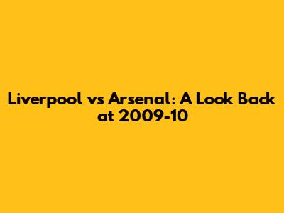 Liverpool Vs Arsenal: A Look Back At 2009-10