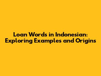 Loan Words In Indonesian: Examples And Origins