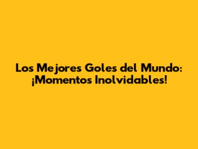 Los Mejores Goles Del Mundo: ¡Momentos Inolvidables!