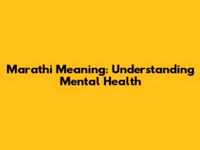 Marathi Meaning: Understanding Mental Health