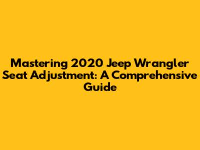 Mastering 2020 Jeep Wrangler Seat Adjustment