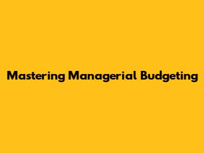 Mastering Managerial Budgeting