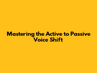 Mastering The Active To Passive Voice Shift