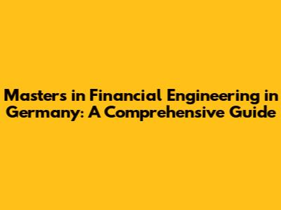 Master's In Financial Engineering In Germany