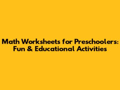 Math Worksheets For Preschoolers: Fun & Educational Activities