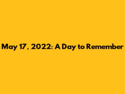 May 17, 2022, might seem like just another date on the calendar, but let's dive into why this particular day could be significant or at least interesting to explore. Whether it's historical events, notable births, or quirky holidays, there's always something unique about any given day. In this article, we’ll explore potential happenings, cultural moments, and other interesting facts related to May 17, 2022. So, buckle up, guys, and let’s get started!