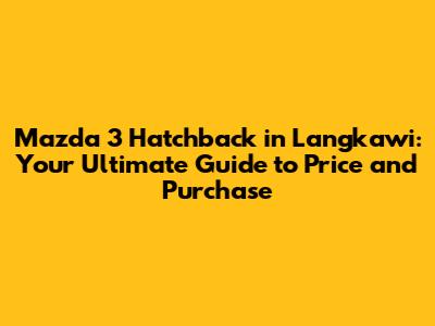 Hey there, car enthusiasts! So, you're thinking about cruising around the stunning island of Langkawi in a Mazda 3 Hatchback? Awesome choice! The Mazda 3 is known for its stylish design, sporty handling, and a comfortable interior, making it a fantastic vehicle for both daily commutes and weekend getaways. But before you dive headfirst into the world of car ownership, let's break down the Mazda 3 Hatchback Langkawi price, explore the factors that influence it, and help you navigate the process of buying one on this beautiful island. This guide will provide you with all the necessary information, so you can make an informed decision and drive away in your dream car.