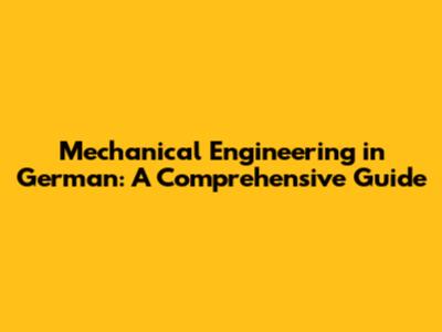 Mechanical Engineering In German: A Comprehensive Guide