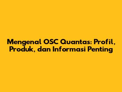 Mengenal OSC Quantas: Profil, Produk, Dan Informasi Penting