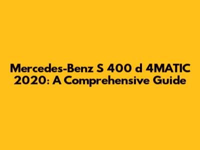 Mercedes-Benz S 400 D 4MATIC 2020: Comprehensive Guide